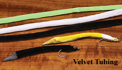 Rogers)が、タイイング・ビデオ『Saltwater Baitfish with Page Rogers』の中で紹介した、ベルベット・チュービング(全3色)を使ったワームパターンはたいへんポピュラーなフライとして有名です。ベルベット・チュービング(全3色)のカラーは、ホワイト、ブラック、チャートリュースの全3色です。ホワイトは油性マジックでお好きなカラーに着色できます。ご注文の際には、カラー(全3色)をお選びください。